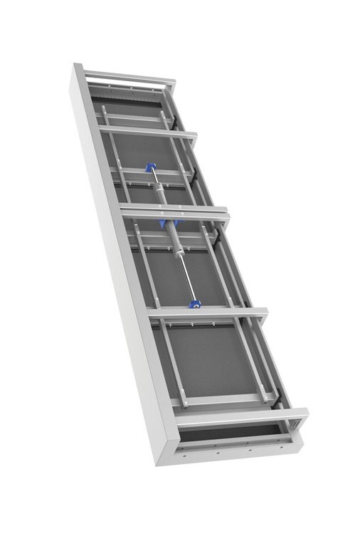 格柵_上方為緊急溢流排放口,當(dāng)格柵自清洗系統(tǒng)失效或者格柵超載的時候,水流可以從格柵